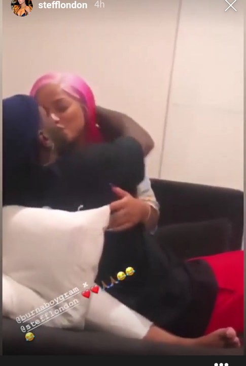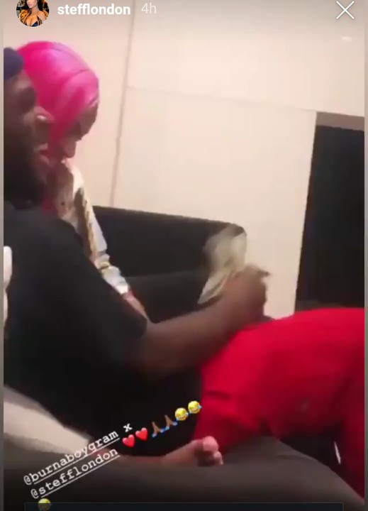 BurnaBoy and SteffLonDon romantically kissed shortly after he won some dollars in a ‘dice rolling’ bet as they both have fun.