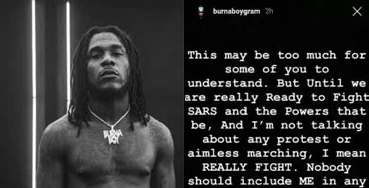However, Burna Boy says he wants to have nothing to do with such until Nigerians are actually ready to fight SARS.