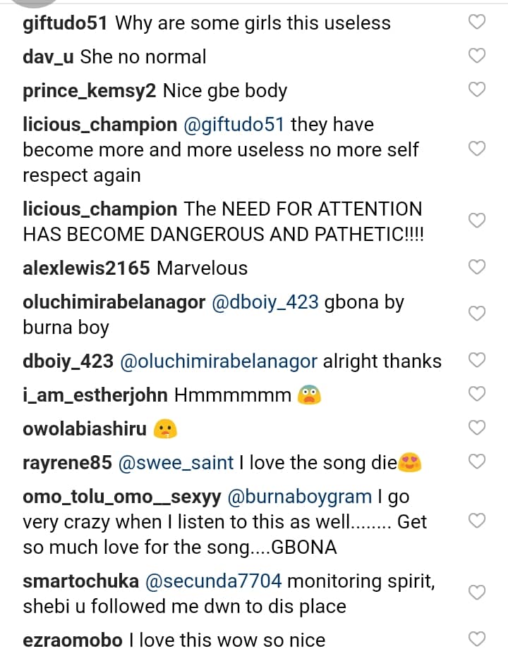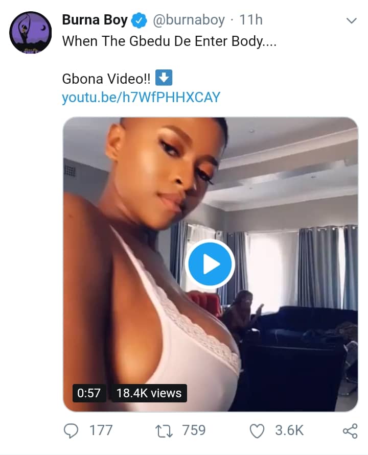 Some condemned her, blasted her for displaying her boobs for all to see and uploading the video on social media. Burna Boy has shared the viral video already.