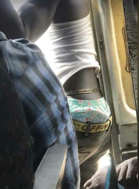 This bus conductor was spotted wearing female-exclusive waist beads somewhere in Lagos State yesterday.