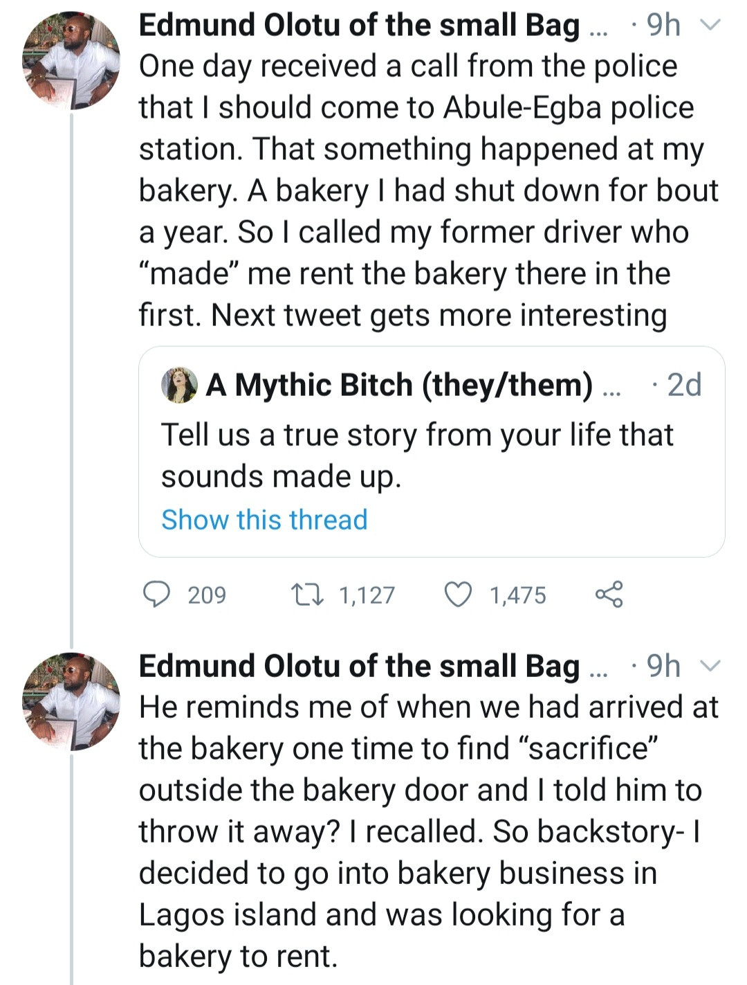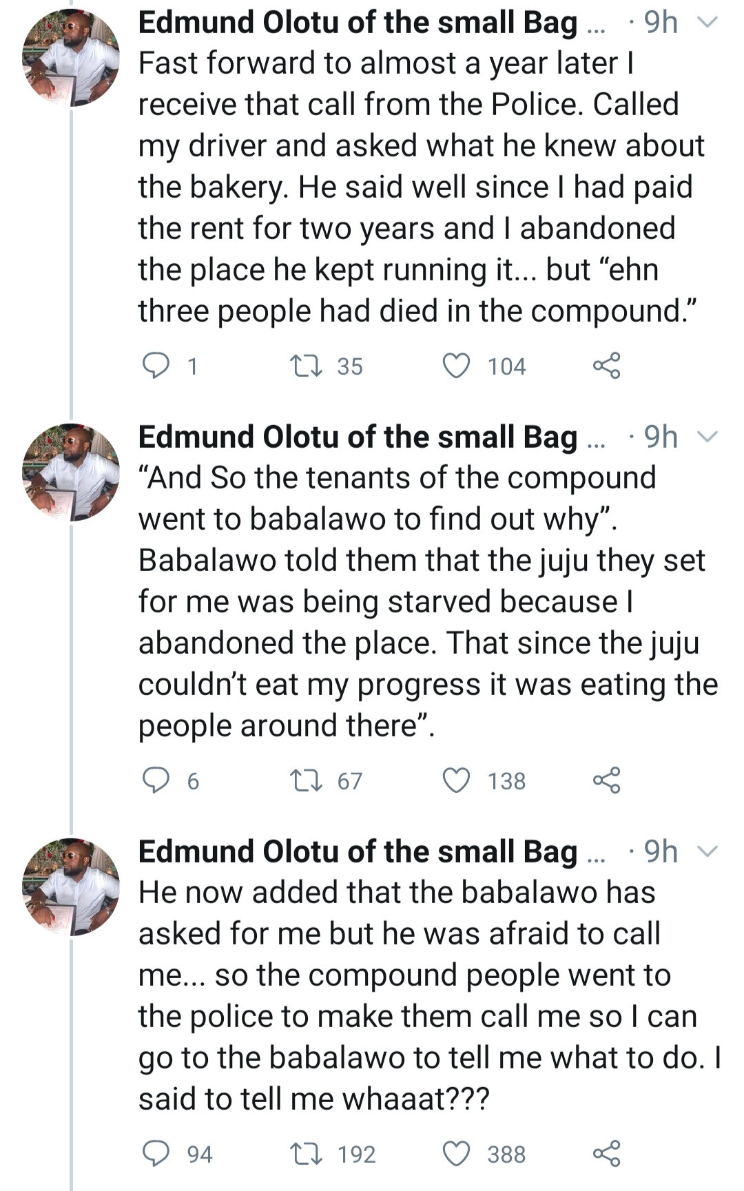 A Nigerian businessman has told a really interesting story about what happened to his bakery.
