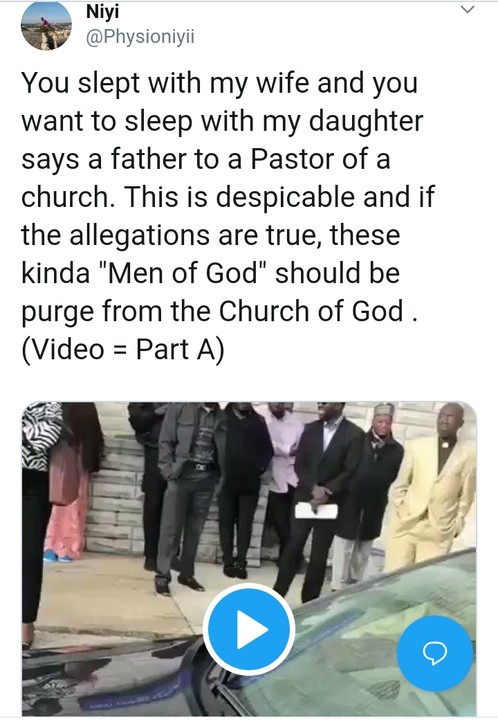 You slept with my wife and you want to sleep with my daughter says a father to a Pastor of a church. This is despicable and if the allegations are true, these kinda “Men of God” should be purge from the Church of God .