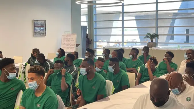 Super Eagles and their officials at the Team Arrival Meeting on Saturday morning