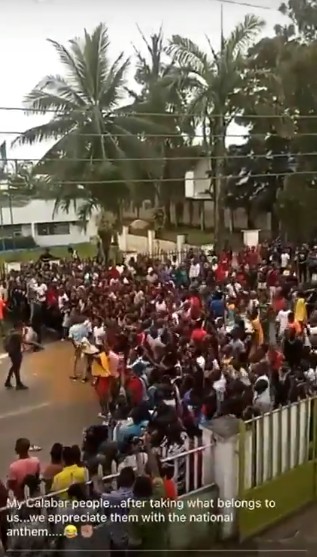 Residents of Calabar were feeling very patriotic after discovering and successfully emptying the CACOVID warehouse at Ayade Fabrication Academy In Calabar.