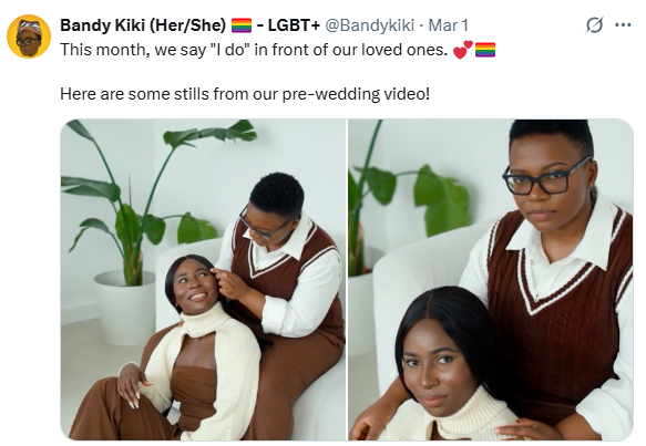 UK-based Cameroonian LGBTQ activist and media personality, Bandy Kiki, has married her Nigerian lover, Jenny.