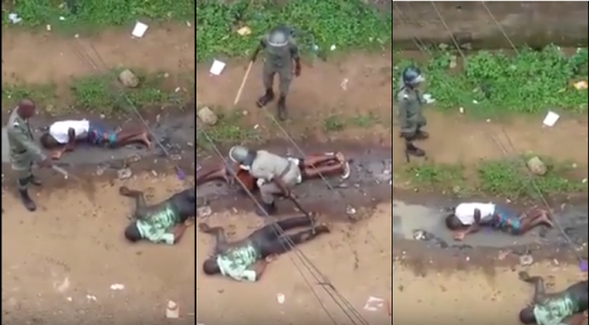 In the video, French-speaking policemen were seen forcing four students to lie in the mud. One of them, female, was forced by a Police officer to stick her face in the mud continously.