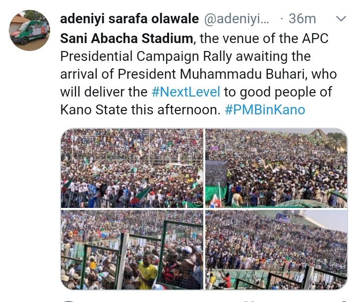 The Sani Abacha Stadium Kano, venue for the presidential campaign of President Muhammadu Buhari, is already filled to capacity.