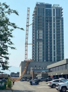 The development company says there was a “catastrophic failure” on Monday morning when the crane fell into an adjacent building and a home.