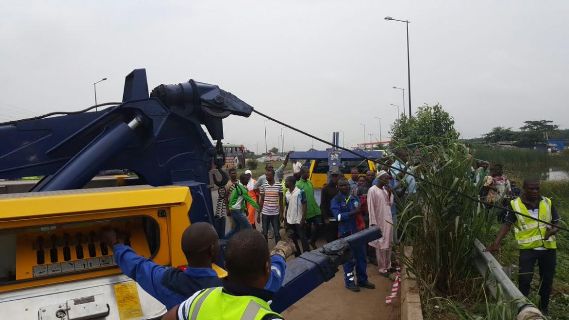 Car crashes into a canal in Ikorodu (see photos)