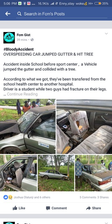 Car Crashes Into A Tree At FUNAAB Campus, 3 Injured (Photos) - 9jaflaver