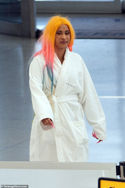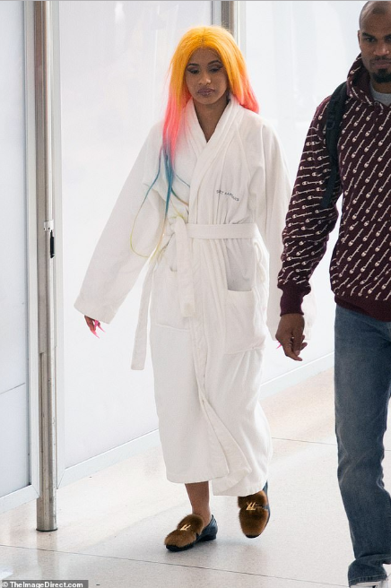 Cardi B was spotted at the airport yesterday wearing a bathrobe.