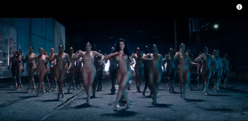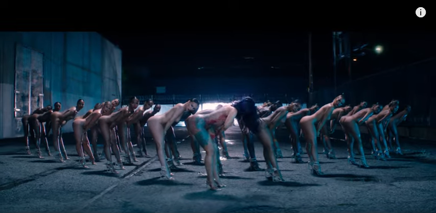 Later, Cardi strips down completely naked, though her nipples and other areas are blurred out. Her dancers also ditch their clothes and perform in the nude. In a following scene, they lay there dead and bleeding while she continues to sing.