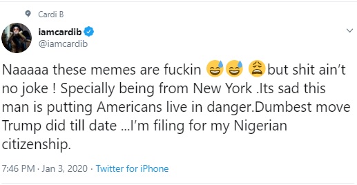 Cardi B Hints At Filing For Nigerian Citizenship.