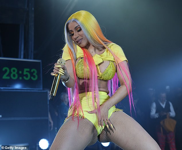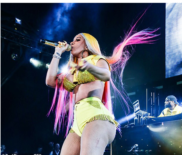 The 26-year-old rapper who recently had liposuction and a boob job commanded attention in a dazzling yellow bra and tiny hot pants as she put her newly-enhanced figure on display during her performance on stage.