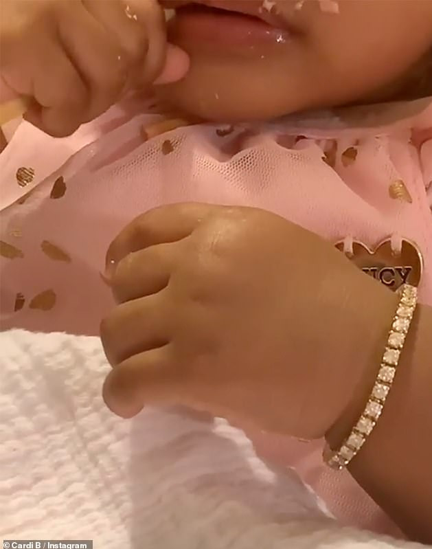 In a now-deleted Instagram post, the 26-year-old rapper and mother of one showed off her little daughter wearing one of the brand new bracelets and said: ‘Just spent a bag on my daughter, you know a bad b**** gonna spoil.’