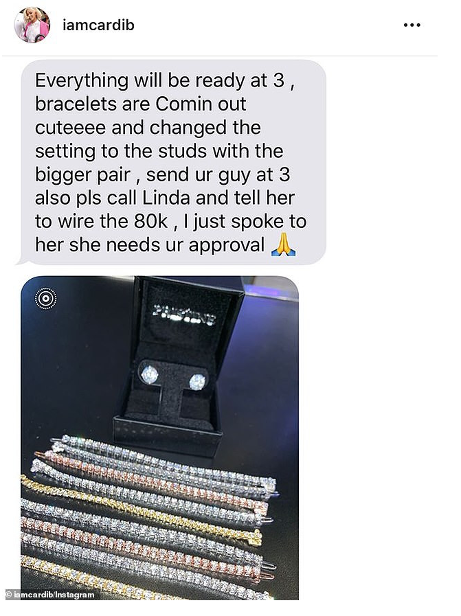 Cardi also shared a screenshot of a text message, along with a picture of the new merchandise she bought for her daughter.