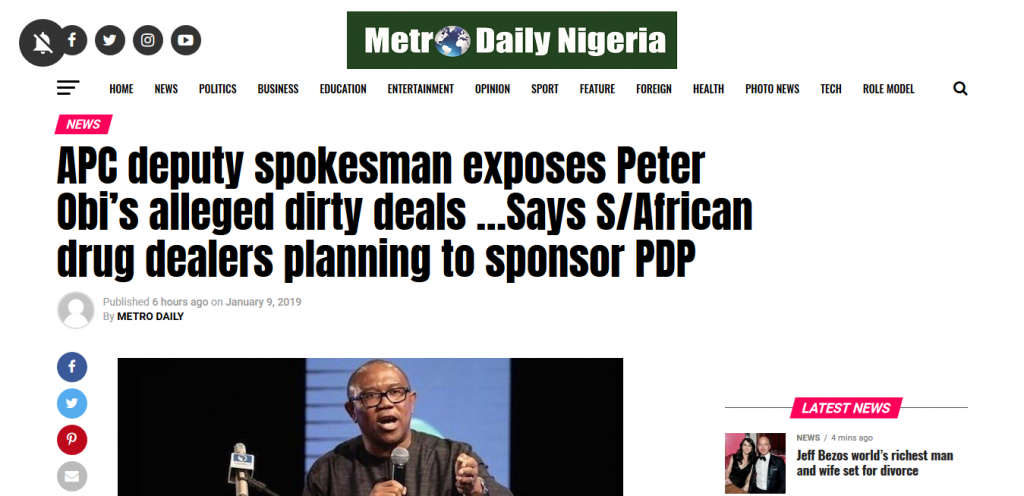 According to him, “those who knew Peter Obi will attest to the fact that he has been accused of involving in drug dealing directly or indirectly since his days as an undergraduate at the University of Nigeria.