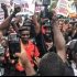 Protesters Carry And Celebrate Policeman At End SARS Protest In Abuja