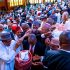 Photos Of Lawmakers Struggling To Shake President Buhari During Budget Presentation