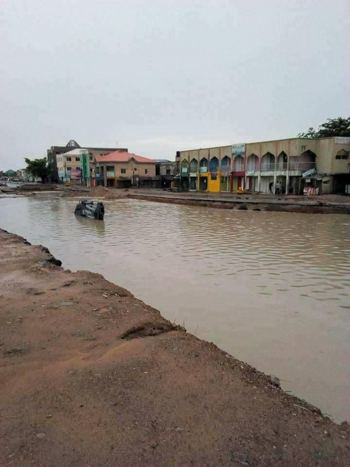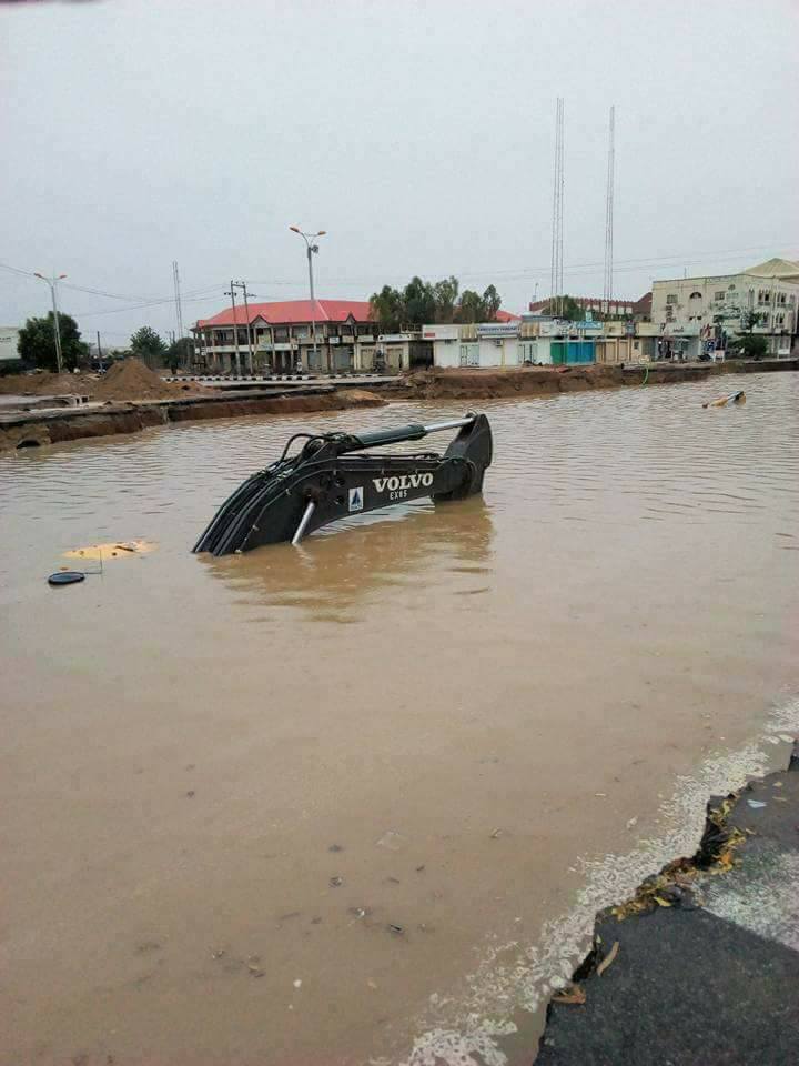 An excavator used for road construction – was submerged in a flood after a heavy downpour in Kano state. According to Abubakar Dala, the equipment had been left at the site for some days now – only for residents to be shocked to see it had been submerged after hours of rainfall.