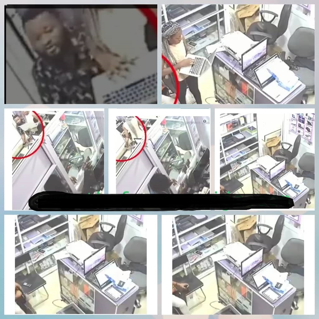 Here is the moment a man stole MAC laptop in Ikeja, Lagos. N50,000.00 reward for anyone with information on how to catch the culprit.