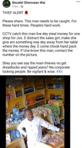 The moment a man stole from a store in Jos has been captured by a CCTV and shared online.