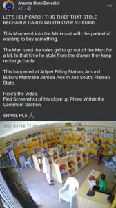 CCTV Captures Moment A Man Stole 100,000 Naira Worth Of Recharge Cards From A Store In Jos