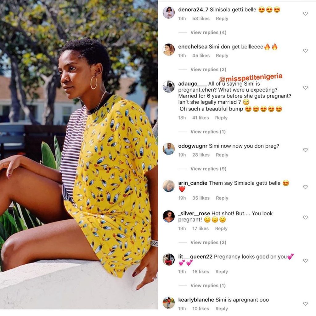 Simi, after sharing this photo on instagram sparked rumor that she might be pregnant as many celebrate her