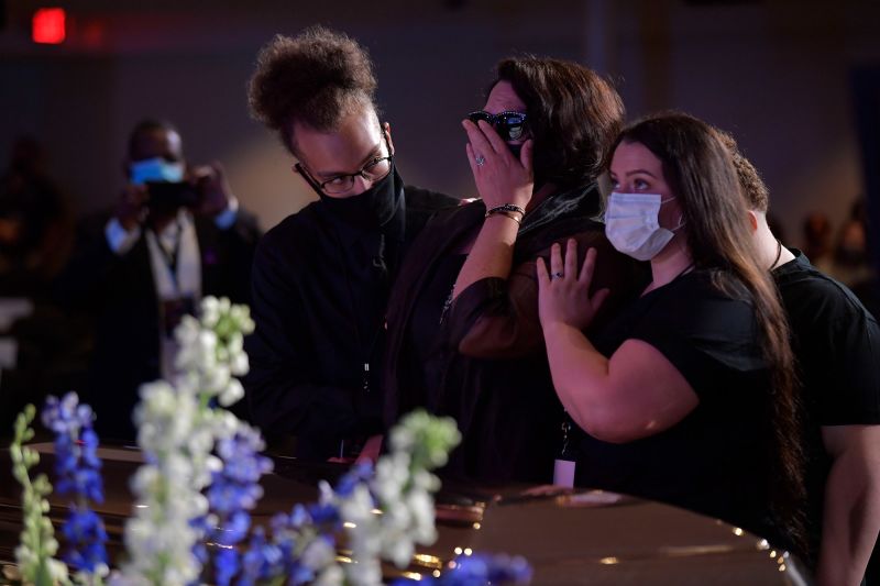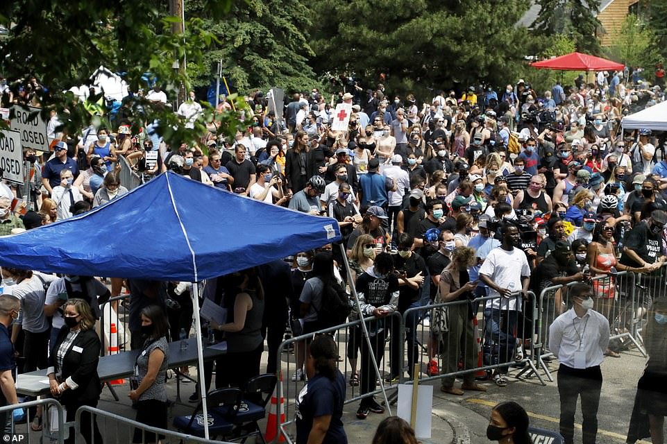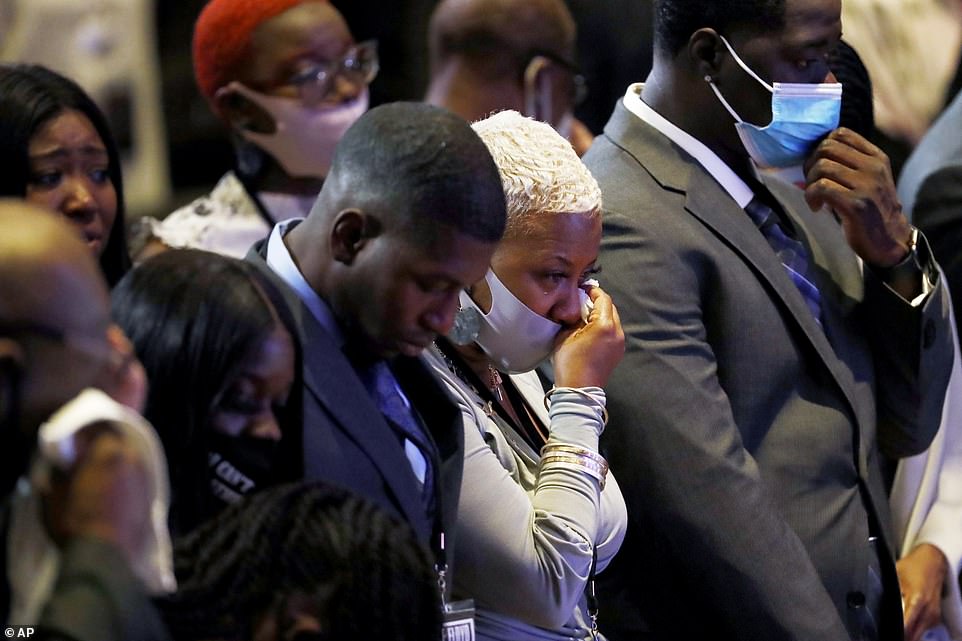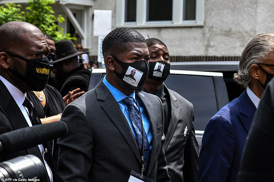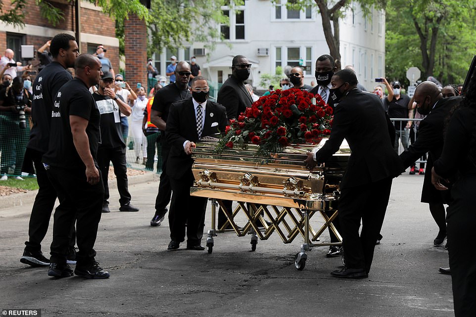Minneapolis Mayor Jacob Frey took a knee in front Floyd’s casket and sobbed before the service got underway.