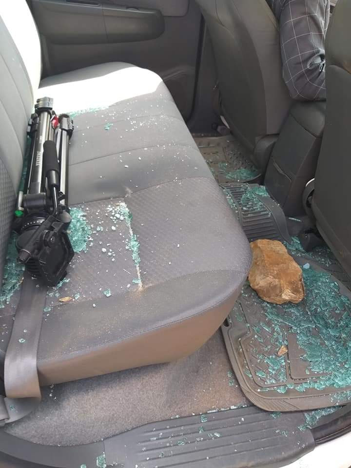 Mr Attah escaped unhurt, however, the screen and rear side window of his official vehicle were destroyed. See his post on facebook mintes after the attcak.