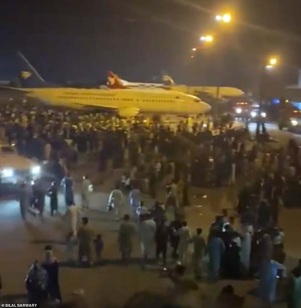 Video from Kabul showed panicked stampedes to the gates of the airport, while some passengers were forced to get off their commercial flights when departures were stopped.