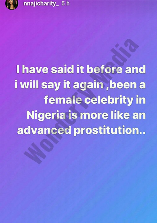 “I have said before and I will say it again, been a female celebrity in Nigeria is more like an advanced prostitution”