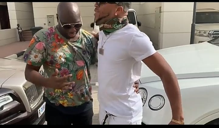 Rapper and Nollywood Actor, Charles Okocha who is currently in dubai meets with Mompha and strike a pose with his cars (Bentley and Range Rover).