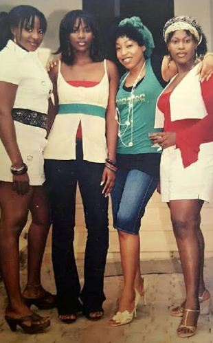 Nollywood actress Uche Jombo posted this photo of herself with colleagues, Genevieve Nnaji, Ini Edo and Rita Dominc from a 2005 movie ‘Girls Cot’