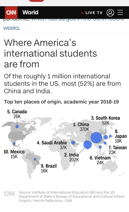 In view of recent events about Trump’s administration policy on online education and international students, let’s look at the countries and continents that will be the most affected.