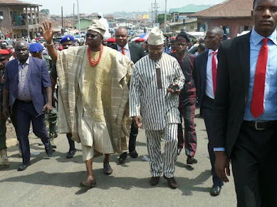 Ekiti state governor, Ayo Fayose looks stylish in his Yoruba traditional attire at the coronation of the new Olubadan of Ibadan, Oba Saliu Akanmu Adetunji which is currently holding in Ibadan. See more photos after the cut…