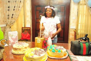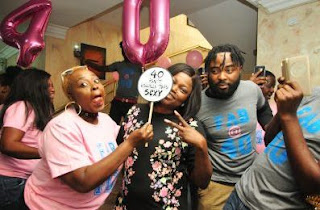 The surprise house party was planned by her husband who took her out of the house two days before her birthday, to celebrate their wedding anniversary on August 23rd while her younger sister, Bimbo Demehin collaborated with him plan the surprise party.