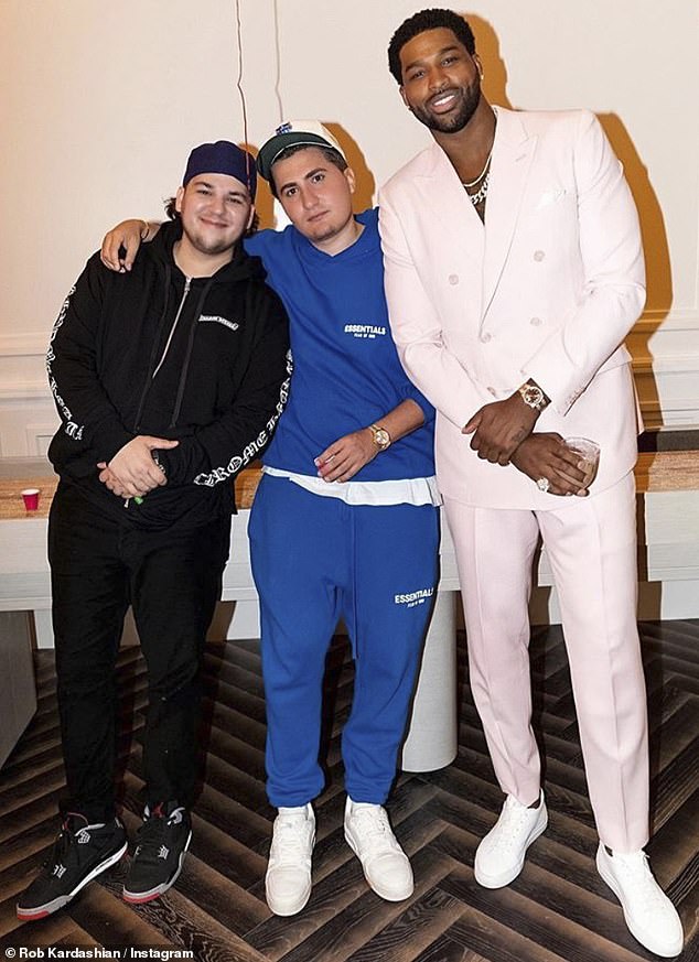 He was also pictured with her sister Kourtney’s ex-Scott Disick and Khloe Kardashian’s ex Tristan Thompson.