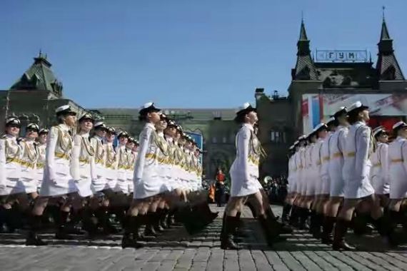 The women were part of a parade in Moscow’s Red Square to commemorate Russian victory over the Nazis in World War 2. Some have branded the parade ‘s*xist’ saying the female army uniforms are too short and revealing. More photos after the cut…