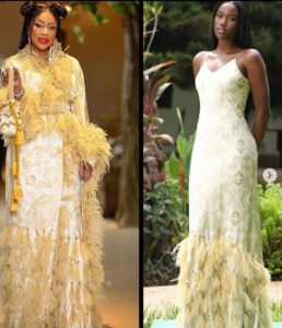 The dress is one of it’s kind and it’s reportedly worth about ₦378,261. The model is wearing a piece on the right.