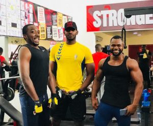 Comedian Bovi shared this fun photo as he visited the gym, he his pictured alongside Former Big Brother Housemate , Kemen and Fitness Instructor, Ugbojiaku Makepeace.
