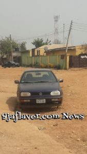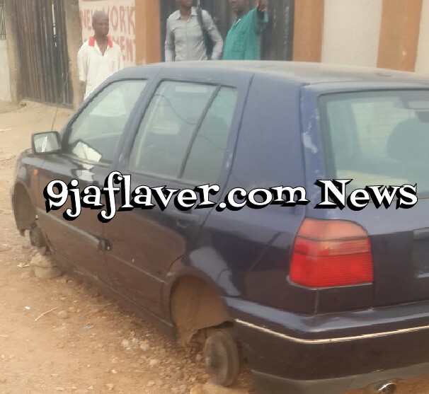 A Gwagwalada, Phase1, Abuja resident was stunned when he woke up this morning only to meet his greatest shock. It turned out that a thief already removed all four wheels of his volks-wagen mini-car (Golf).