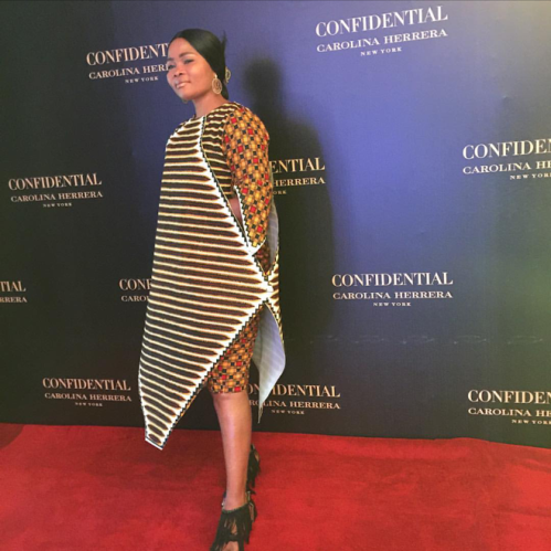 She wore this unique piece to the Confidential Carolina Herrera media/press lunch today.