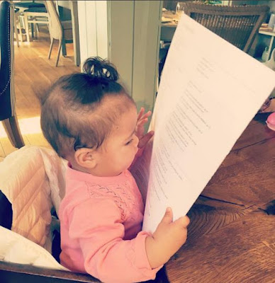 Their mom shared the picture on instagram. She is pretending to read the menu at a restaurant.
