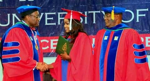 Taking to his Facebook page, Atiku Abubakar shared photos of himself and Mary Katambi on her graduation. He wrote;