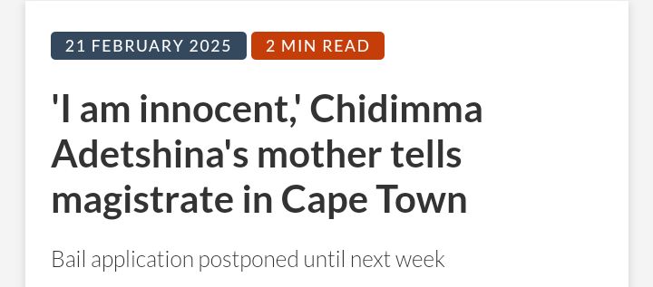 These were the words of Anabela Rungo, mother of beauty queen and model Chidimma Adetshina, while applying for bail on Friday in the Cape Town magistrate’s court.