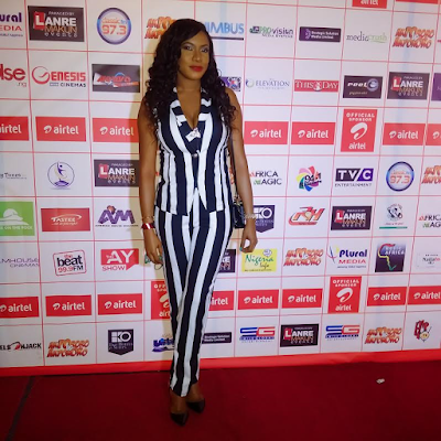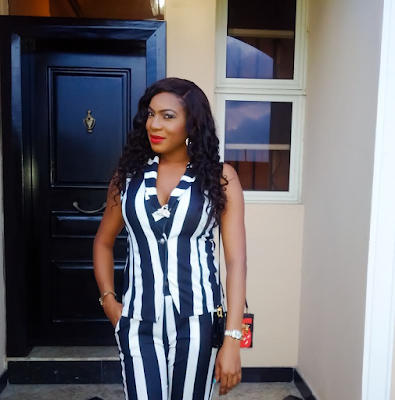Actress Chika Ike stepped out in black and white stripes to the Akpororo vs Akpororo event. More photos after the cut…