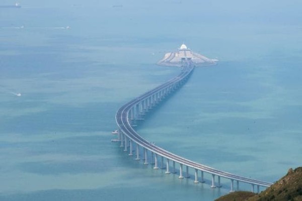 Part of the total crossing consists of a 30km bridge that crosses the sea. A 6.7km underwater tunnel also runs between two artificial islands to allow large cargo ship containers to pass through.