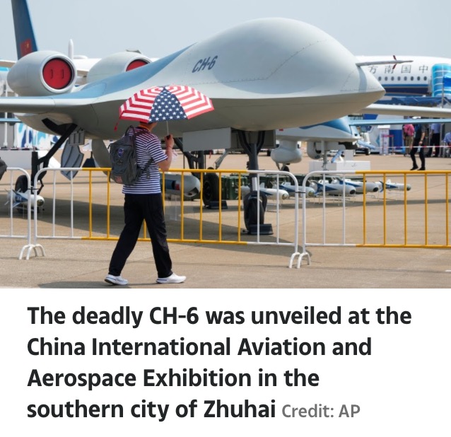 One of two new drones unveiled at the country’s biggest air show in Zhuhai, the CH-6 can “menace military targets across the Pacific with a barrage of missiles or snoop on American manoeuvres with the latest surveillance equipment,” reported the Times.
