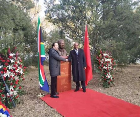 During the unveiling, the national anthems of the Republic of South Africa and the People’s Republic of China were played, and a number of guests placed flowers under the statue.